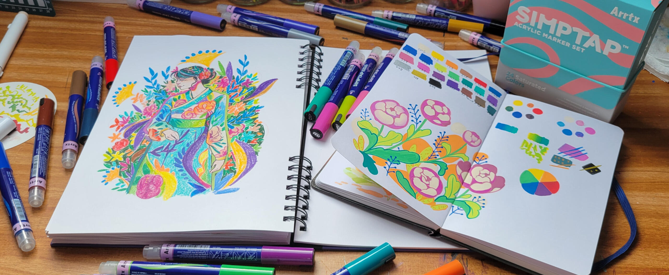 ✦ Je travaille en mix média, ce qui signifie que j’aime utiliser plusieurs techniques dans le même projet. Mon médium de prédilection est l’aquarelle, et j’adore l’associer à la gouache, au crayon de couleur, et même parfois digital!✦ J’aime travailler les couleurs et les formes, et j’essaie de montrer de la joie et de l’amusement dans mes projets!Je suis artiste peintre indépendante et professeur d’art en lycée, ce qui combine les deux choses que je préfère: dessiner, et transmettre mes connaissances.Dans ce sens je crée aussi beaucoup de contenu en ligne dans l’idée du partage et de l’aide, entre Youtube et Patreon ainsi que les cours en direct, j’aime à penser que j’aide mes collègues artistes un peu tous les jours ;)✦ Fais un tour sur ma page Instagram ou Youtube pour voir plus de news régulières, et jette un oeil à ma boutique si tu veux me soutenir un petit peu! :D